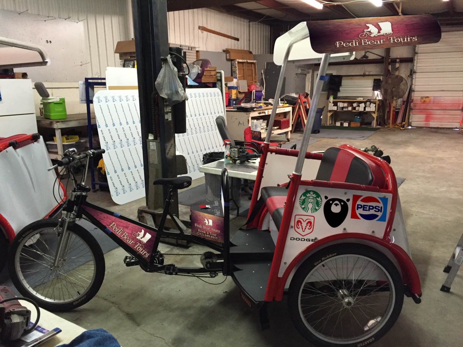 With partial branding, we can incorporate your event's branding onto the exterior of our pedicabs. Whether it's your logo, event theme, or specific imagery, we'll ensure that your branding stands out, turning our pedicabs into mobile advertisements for your event. It's a surefire way to make a lasting impression on your attendees and ensure that your brand gets noticed.